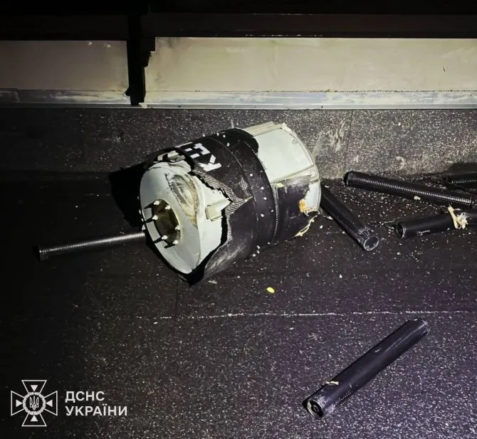 Дрон-камікадзе влучив у дах житлової багатоповерхівки, але, на щастя, не вибухнув. На даху залишилися сам дрон, його бойова частина та 21 касетний боєприпас. Ще один елемент знайшли у дворі будинку.