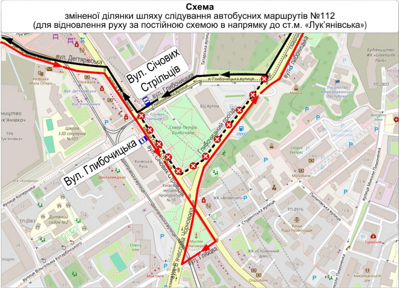 Зокрема, відновлюється рух трамваїв № 14 «Проспект Відрадний — Контрактова площа» та № 18 «Контрактова площа — вулиця Старовокзальна», а також автобуса № 112 «Вулиця Микитенка — станція метро „Лук’янівська“».