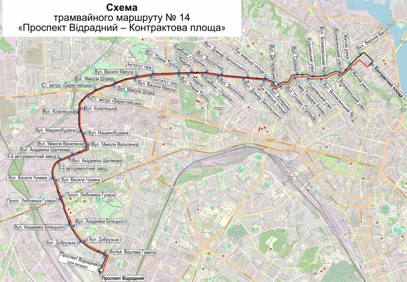Водночас із 16 грудня припиняє роботу тимчасовий автобусний маршрут № 14-Т «Проспект Відрадний — Контрактова площа», який запроваджували на період проведення ремонтних робіт.