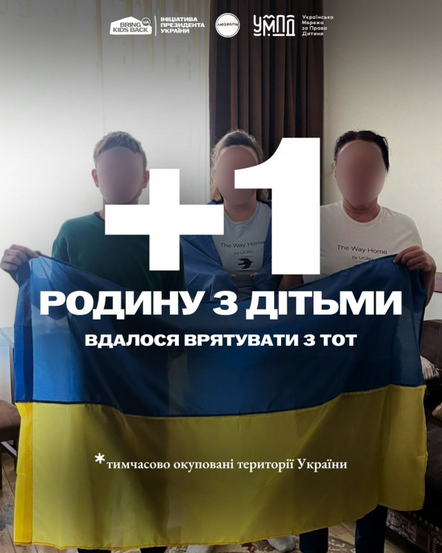 У межах президентської ініціативи Bring Kids Back UA, за підтримки Української мережі за права дитини (УМПД) та волонтерської ініціативи «Людяність», ще одна родина з дітьми змогла виїхати з тимчасово окупованої території та повернутися на підконтрольну Україні територію. Сім’я опинилася в окупації з перших днів повномасштабного вторгнення. Про це розповіли у Bring Kids Back UA.
